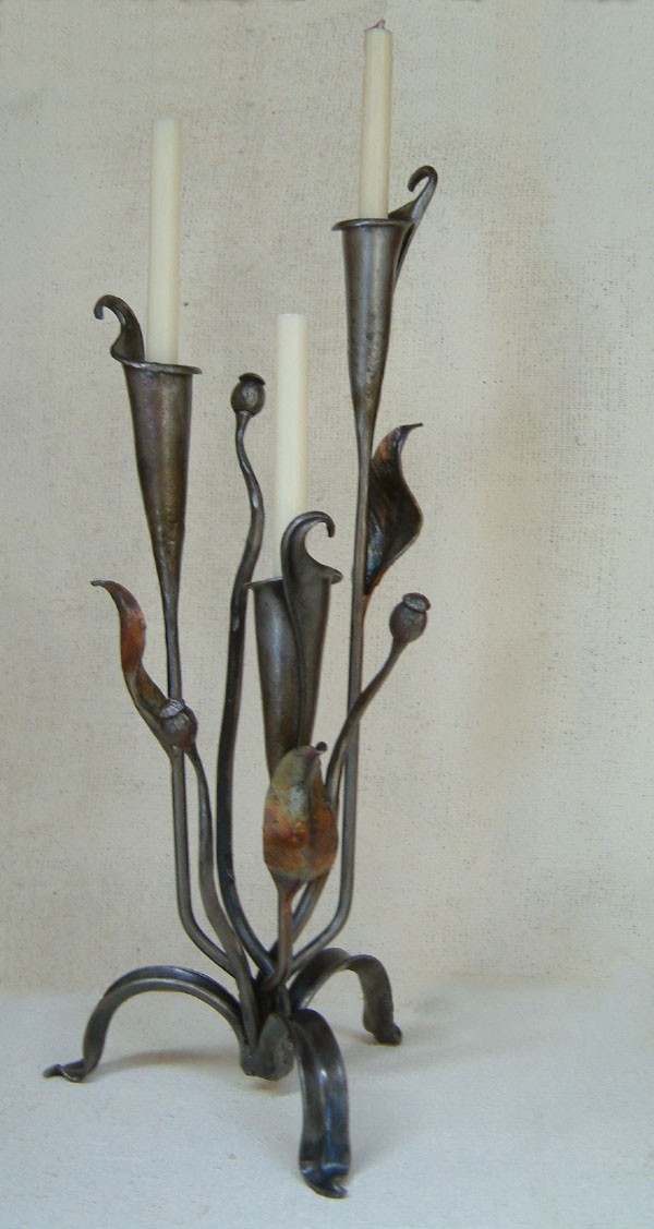 There is a range of Lily candleholders from the single standing or sconce through to the triple lily candleholder. The dimensions and design can be made to order. Costs £55-£250