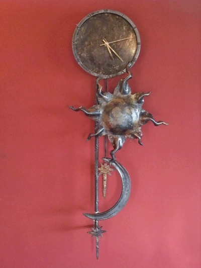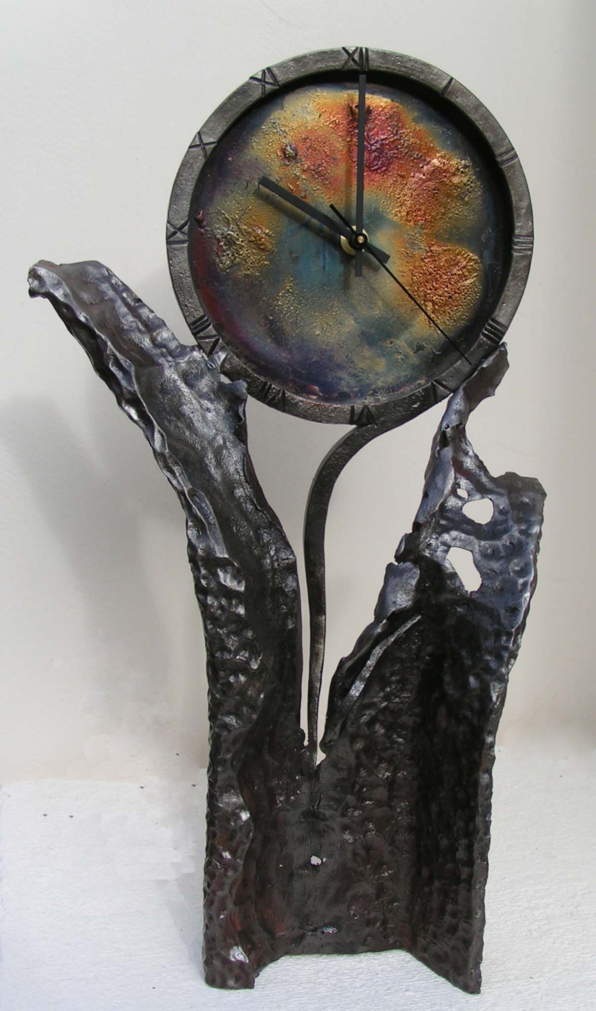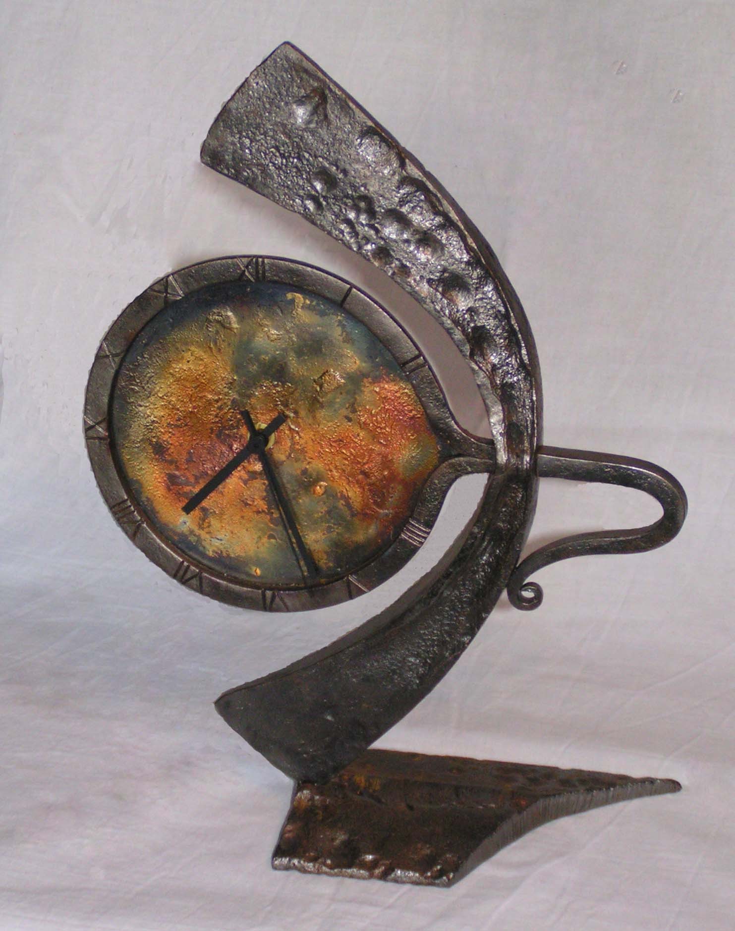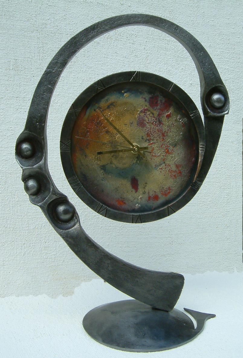 Roy produces clocks with quartz movements. These can be fixed or pendulum. A variety of styles of hands can be used. The clocks can be hanging or standing.